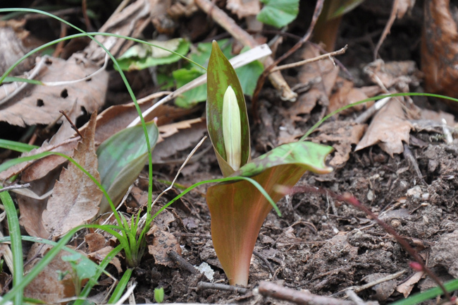 平成22年5月1日撮影![]() 鷹の巣遊歩道の丸山大橋側のカタクリは、 花が終わり子房が露出していました。 ・ ![]() 子房が裂開するまで後一月。 落ちた種を蟻が運んでくれるでしょう。 |